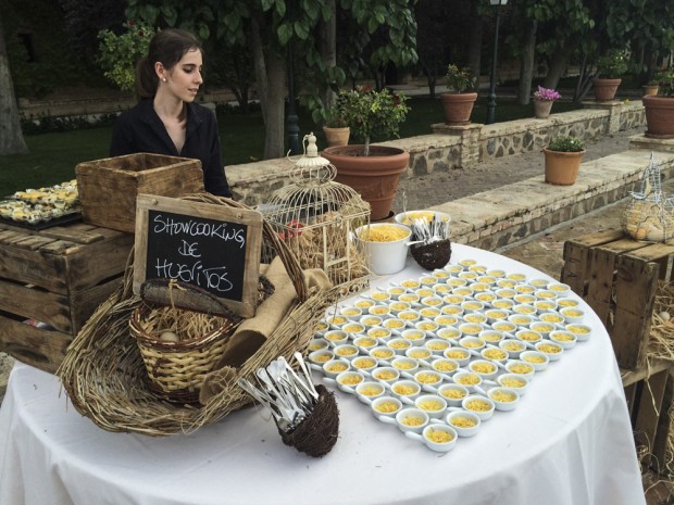 Como ya sabéis otra de nuestras grandes apuestas de esta temporada son nuestros puestecitos y bodegones en showcooking, que en esta ocasión Estela y Javier decidieron que fuera de huevitos trufados con patatas paja.